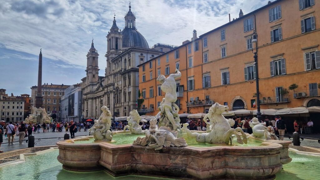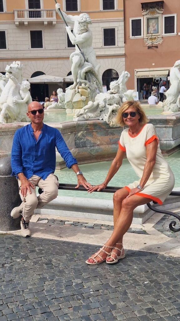 Wir denken, wir haben – jeder für sich –, beide schon genug gesehen von Rom. Den Vatikan, das Antike, das bunte Leben auf der spanischen Treppe. Wir könnten jedoch einen Kaffee auf dem Piazza Navona trinken, das haben wir gemeinsam noch nicht gemacht. Ein Foto von uns vor dem Brunnen, auf dem Neptun, der uns auf See ständig präsent ist, einen Oktopus ersticht, warum nicht – natürlich fahren wir nach Rom. Die Fahrt mit dem Regionalzug für kleines Geld dauert keine Stunde, schneller jedenfalls als mit den Öffentlichen von Wehrheim an den Flughafen Frankfurt.