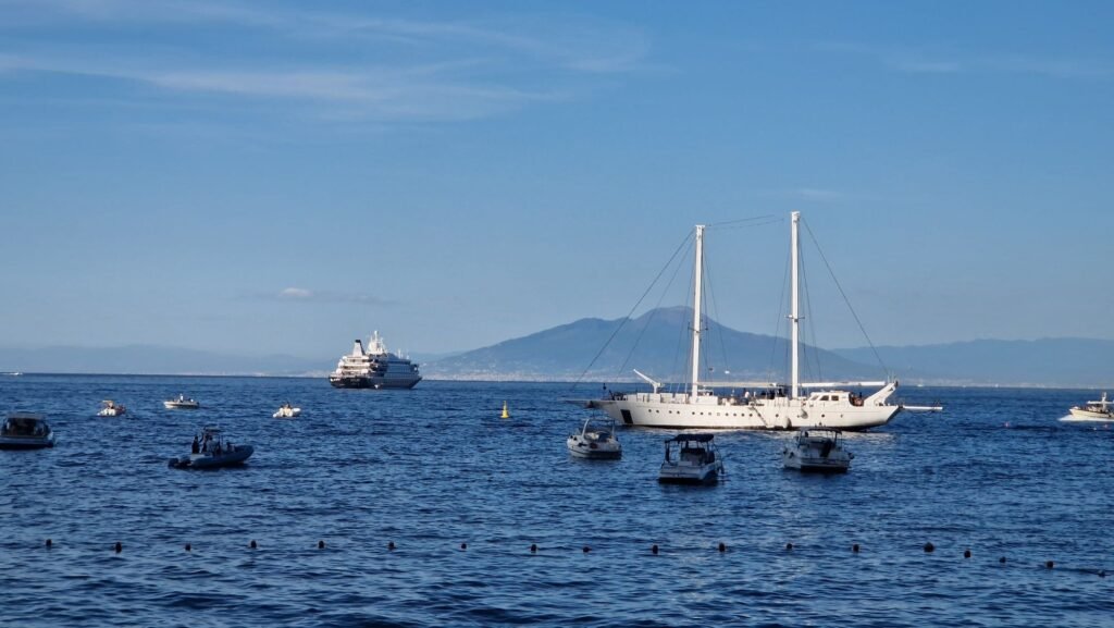 Latiens Küste hat nicht viel zu bieten für Segler, aber weil schweres Unwetter mit Blitz und Donner vorhergesagt sind, müssen wir irgendwo in der Gegend von Ostia einen Stop einlegen. Wir sind auf dem Weg nach Süden. Sprichwörtlich links liegen lassen wollten wir die Stadt, in die alle Wege führen, wie man so sagt, und das tun sie. Wir kommen schließlich bei Civitavecchia unter, neben dem Hafen der Ozeanriesen. Drei, vier Pötte so groß wie eine Stadt liegen hier jeden Tag. Gut, dass wir eine Landzunge weiter südlich keinen Blick auf sie haben.