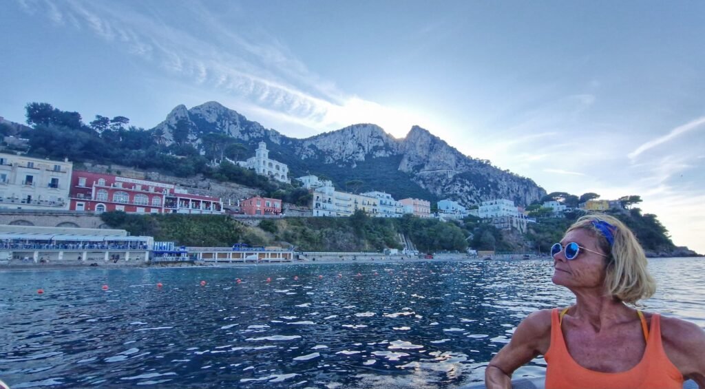 #capri. Das ist für viele der Blick von der Terrasse zwischen von Bougainvilla umschlungenen Säulen hindurch, hinab auf die Bucht, das Felsentor Faraglioni, vor dem man sich unbedingt ablichten lassen möchte, am besten vom Boot aus. Morgens ab neun fahren die ersten umgebauten Kutter mit den schönen Touristinnen an Bord hinaus, für dieses eine Bild. Sie drapieren sich auf der Kunstledermatte am Vorschiff wie Diven, durch und durch gestylt, mit Handtäschchen. Die Frauen lassen sich das mehrere Hundert Euro kosten, um bei den Likes ganz vorne mit dabei zu sein. So kann man auch die schönsten Plätze der Welt zur Kulisse eines leeren Ichs abwerten.